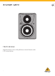 10 クイックスタートガイド TRUTH B1030A 技術仕様 オーディオ入力 XLR コネクター ¼" TRS RCA 入力インピーダンス その他の重要な情報 平衡入力 平衡入力 不均衡な入力 最大 入力レベル 10 kΩ -6 dB 〜 +6 dB +22 dB 高周波ドライバー 超高解像度 1" ドームツイーター 入力トリム トランスデューサー 低周波ドライバー 直径 5 ¼" のケブラーダイヤフラム アンプ出力パワー 低周波ドライバー RMS @ 0.1 % THD (正弦波) 最大電力 高周波ドライバー RMS @ 0.1 % THD (正弦波) 最大電力 クロスオーバー タイプ クロスオーバー頻度 システム仕様 周波数応答 音圧レベル 35 W @ 4 Ω 50 W @ 4 Ω 15 W @ 4 Ω 25 W @ 4 Ω アクティブ 4.