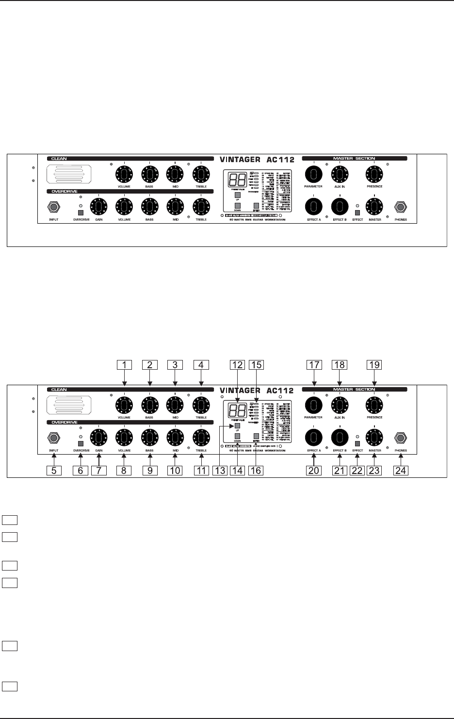 The BEHRINGER VINTAGER AC112 features 15 controls, five push-buttons and one 2-digit, 7-segment LED