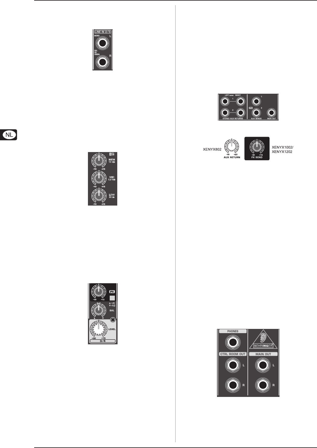 Het XENYX 802 heeft in elk stereokanaal een 3-band equalizer.