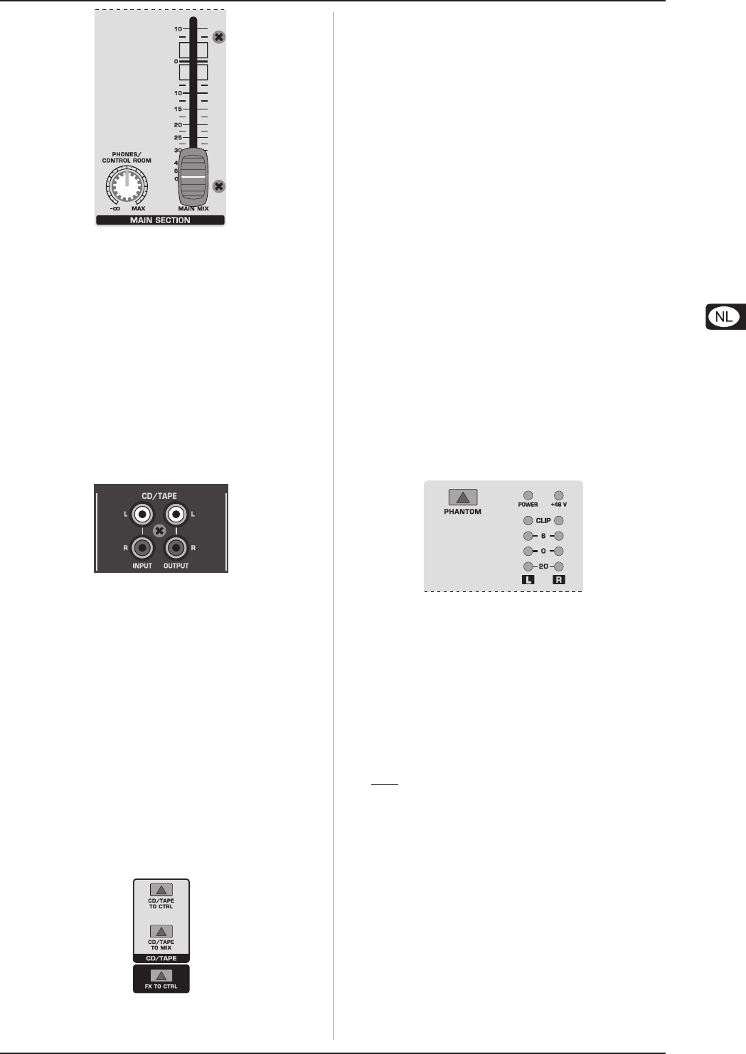 uitgangsniveau wordt via de bijzonder precieze MAIN MIX-fader