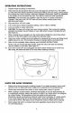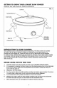 AVANT LA PREMIÈRE UTILISATION 1. 2. 3. 4. 5. 6. 7. Déballer la mijoteuse avec soin et la nettoyer. Voir les DIRECTIVES DE NETTOYAGE. La mijoteuse doit être utilisée une fois avant de faire cuire des aliments dans la cocotte en grès. Verser 4 tasses d’eau dans la cocotte en grès et la placer dans la base. Mettre le couvercle en verre. Brancher l’appareil dans une prise c.a. de 120 V. Placer le bouton de réglage à température élevée (HIGH) et laisser chauffer pendant environ 30 minutes.
