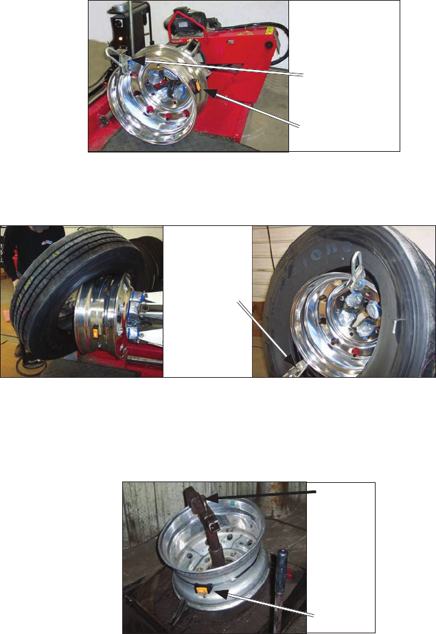 1. Place the rim on the machine with the mounting shoe at the 9 o’clock