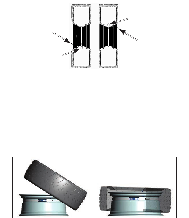 MUST always be mounted on the vehicle with the valve stems 180° apart or