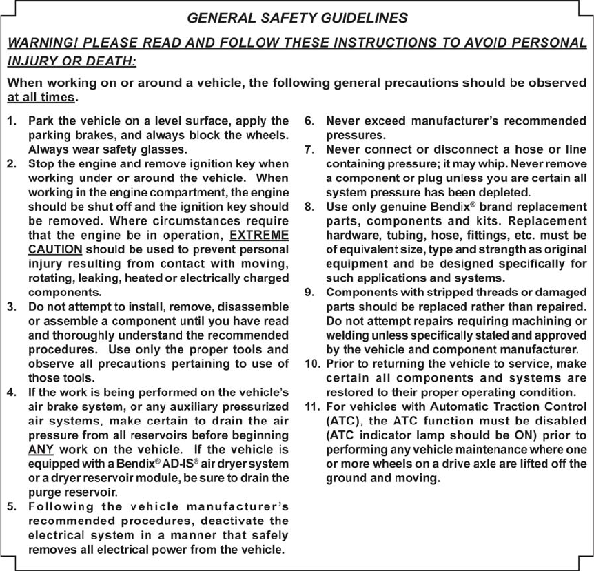 BW1430 © 2011 Bendix Commercial Vehicle Systems LLC, a member of the Knorr-Bremse Group • 11/2011 • All Rights Reserved