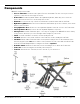 Components MD-6XP components include: • • • • • • • • • • • • • Scissor Structure. Holds the Lift together. Pivots in the middle. The two scissor pieces move together to raise the Lift, move apart to lower it. Power Unit. Provides Hydraulic Fluid to the Hydraulic Cylinders, which they use to raise the Scissor Structure. Connects to an external power source. Platform. Located on the top of the Scissor Structure. Holds the Arms and the Lift Pads. Hydraulic Cylinders.