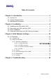 Notice I Copyright Statement This manual cannot be reproduced in any form or by any means or used to make any derivative such as translation, transformation, or adaptation without the prior written permission of BenQ Corporation. BenQ Corporation reserves the right to change this manual and the specifications to improve products without prior notice. So you can get the most recent software and user documentation for all BenQ Wireless LAN products on our web site. http://www.BenQ.