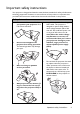 Safety Instructions (Continued) 7. 10. The lamp becomes extremely hot during operation. Allow the projector to cool for approximately 45 minutes prior to removing the lamp assembly for replacement. 8. Do not operate lamps beyond the rated lamp life. Excessive operation of lamps beyond the rated life could cause them to break on rare occasions. 11. Do not place this product on an unstable cart, stand, or table. The product may fall, sustaining serious damage.