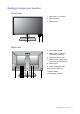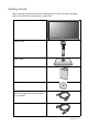 Getting started When unpacking please check you have the following items. If any are missing or damaged, please contact the place of purchase for a replacement. BenQ LCD Monitor Monitor Stand Monitor Base Quick Start Guide CD-ROM Power Cord (Picture may differ from product supplied for your region.