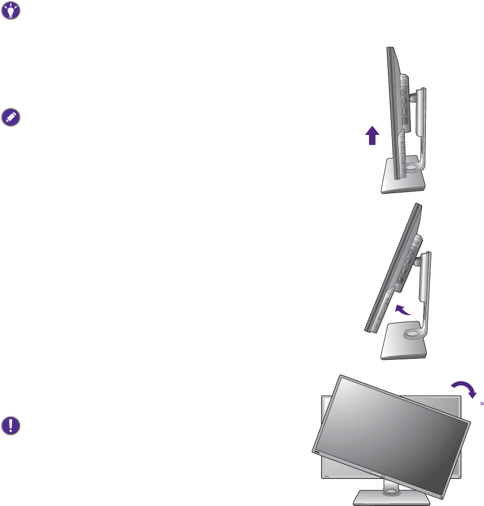 Before rotating the monitor with a portrait viewing orientation, the display has to be rotated 90