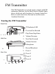 FM Transmitter The FM Transmitter is a wired remote control, with FM transmitter function, for the BenQ Joybee Digital Audio player which not only functions as a remote control but also as a radio transceiver that can be used for music broadcast functions. Touring the FM Transmitter Front View 1. TX Indicator LED 2. Previous/Fast Rewind 3. Play/Pause/Stop/Enter 1 2 3 4 56 7 Side View 4. Volume Decrease 5. Next/Fast Forward 6. Volume Increase 7. Microphone 8. Record/Broadcast 8 9.