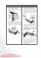 6. Loosen the screw fixing the lamp to the projector. If the screw is not loosened completely, the lamp cannot be removed. 7. Lift the handle so that it stands up. Use the handle to slowly pull the lamp out of the projector. • Pulling it too quickly may cause the lamp to break and scatter broken glass in the projector. • Do not place the lamp in locations where water might splash on it, children can reach it, or near flammable materials.
