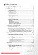 Table of contents Important safety instructions .................................... 1 Introduction ............................................................... 5 Projector features ................................................................. 5 Shipping contents ................................................................. 6 Standard accessories ...................................................................................... 6 Optional accessories ..........................................