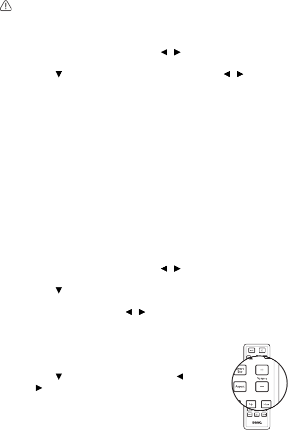 The sound adjustments made as below will have an effect on the projector speaker(s). Be
