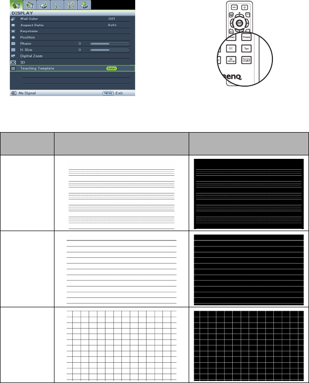 Open the OSD menu and go to the DISPLAY > Teaching Template . Choice
