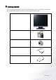 1 Getting Started When unpacking please check you have the following items. If they are missing or are damaged, please immediately contact the dealer at which you purchased the goods. BenQ LCD Monitor Quick Start Guide 2 CD-ROM Disk 3. 00 P / N : 5 3.