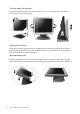 Viewing angle adjustment You may position the screen to the desired angle with -5° to +20° monitor tilt, 360° monitor swivel, and 72 mm monitor height. Storing the monitor If you need to store your monitor for an extended period of time, please unplug your monitor from the electric outlet and all connected cables before any action is taken. It is recommended to pack the monitor in its original equipment.