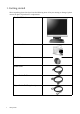 Table of Contents Getting started ...................................................................................................................... 4 Getting to know your monitor ............................................................................................ 6 Front view ....................................................................................................................6 Back view ..............................................................................................