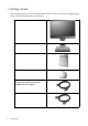 Table of Contents Getting started ...................................................................................................................... 4 Getting to know your monitor ............................................................................................ 6 Front view ....................................................................................................................6 Back view ..............................................................................................