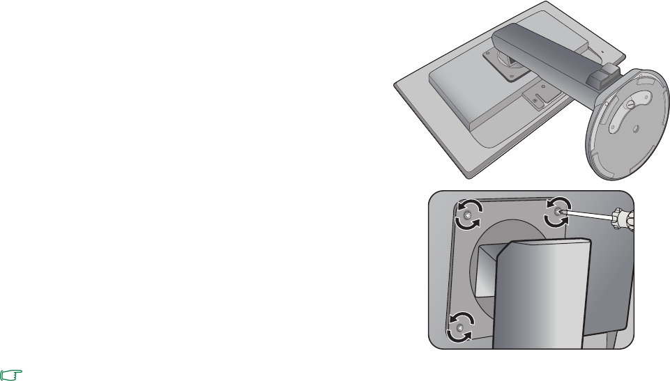oppervlak. Maak de monitorvoet los zoals aangegeven in