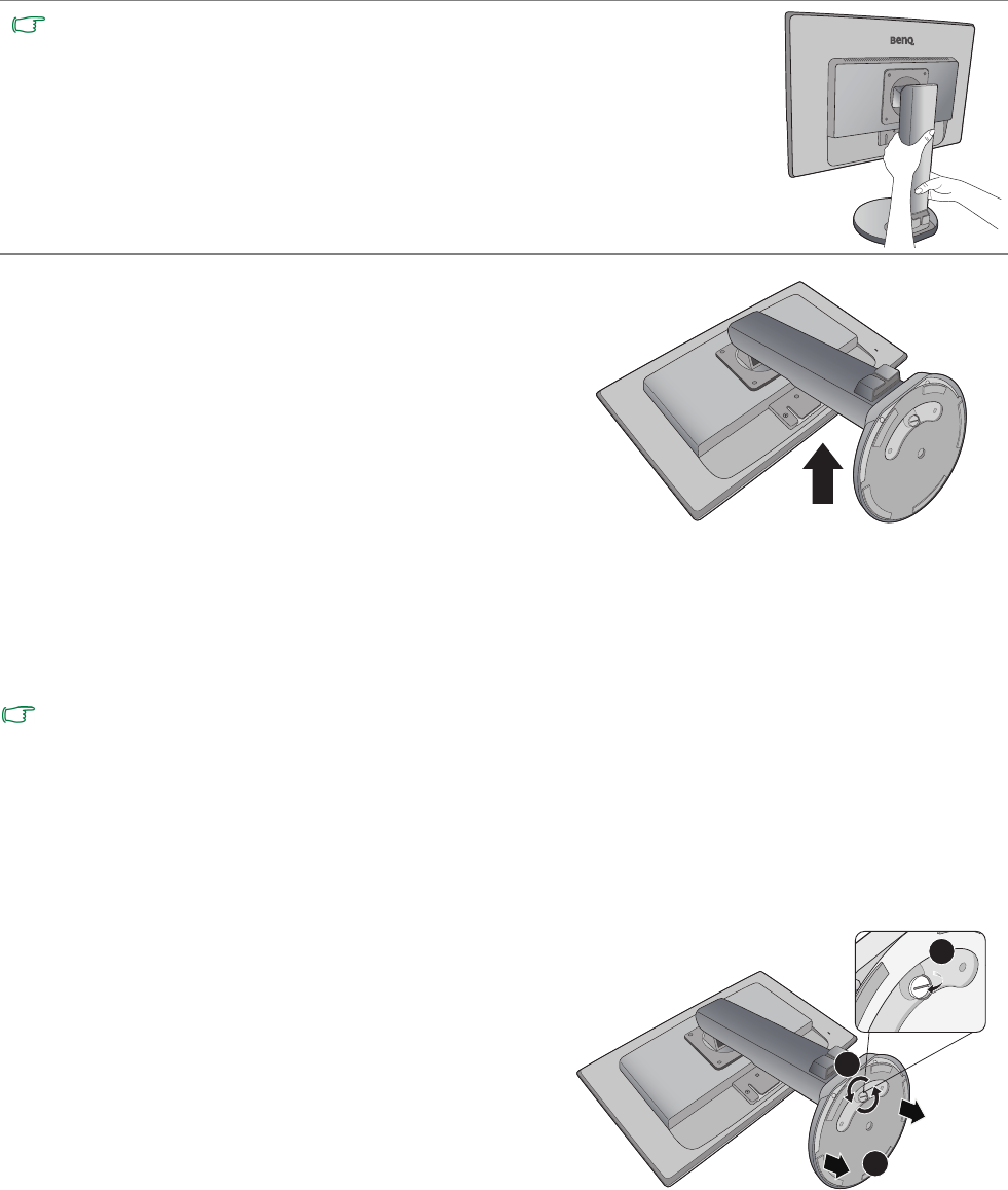 monitorstandaard en de andere hand aan de onderzijde. Zie de afbeelding.