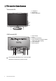 2. Uw monitor leren kennen Vooraanzicht 1. Luidsprekers 2. Aan/uit-knop 3. Bedieningsknoppen 3 2 1 1 Achteraanzicht 4. 5. 6. 7. Stroomingang Lijn-in Koptelefoonaansluiting DVI-D-aansluiting (Analoge modellen hebben geen DVI-D-ingang) 8. D-sub-aansluiting 9. Blokkeringstoets 4 56 7 8 9 • Bovenstaande afbeelding kan per model verschillen. • Beeld kan verschillen per product per regio.