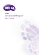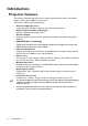Introduction Projector features The projector integrates high-performance optical engine projection and a user-friendly design to deliver high reliability and ease of use. The projector offers the following features. • • • • Advanced LED light source Long lasting LEDs provides a longer life span than traditional lamps. Optical engine with DLP technologies WXGA resolution and a bright picture. Wireless Display Supports wireless projection for PC (Windows and MAC) and mobile devices (iOS, Android).