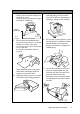 Maintenance Care of the projector Your projector needs little maintenance. The only thing you need to do on a regular basis is to keep the lens clean. Never remove any parts of the projector. Contact your dealer if other parts need replacing. Cleaning the lens Clean the lens whenever you notice dirt or dust on the surface. • • Use a canister of compressed air to remove dust. If there is dirt or smears, use lens-cleaning paper or moisten a soft cloth with lens cleaner and gently wipe the lens surface.