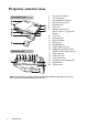 Projector exterior view Front/upper side 1 2 7 3 3 1 4 8 2 5 8. 9. 10. 11. 12. 13. 14. 6 Rear/lower side 10 11 12 13 14 15 16 17 9 1. 2. 3. 4. 5. 6. 7. 18 19 15. 16. 17. 18. 19. 20. Vent (cold air intake) Internal Speakers Vent (heated air exhaust) Front IR remote sensor Projection lens Lens cover External control panel (See "Projector" on page 9 for details.