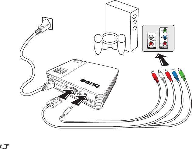 So schließen Sie den Projektor an ein Component-Video-Gerät an: