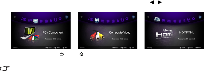 2. Schalten Sie den Projektor und das Quellgerät ein. Der Projektor zeigt die Startseite