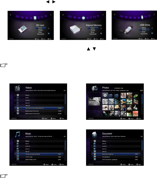 4. Speicher werden auf der Startseite in die Menüs Videos, Fotos, Musik,