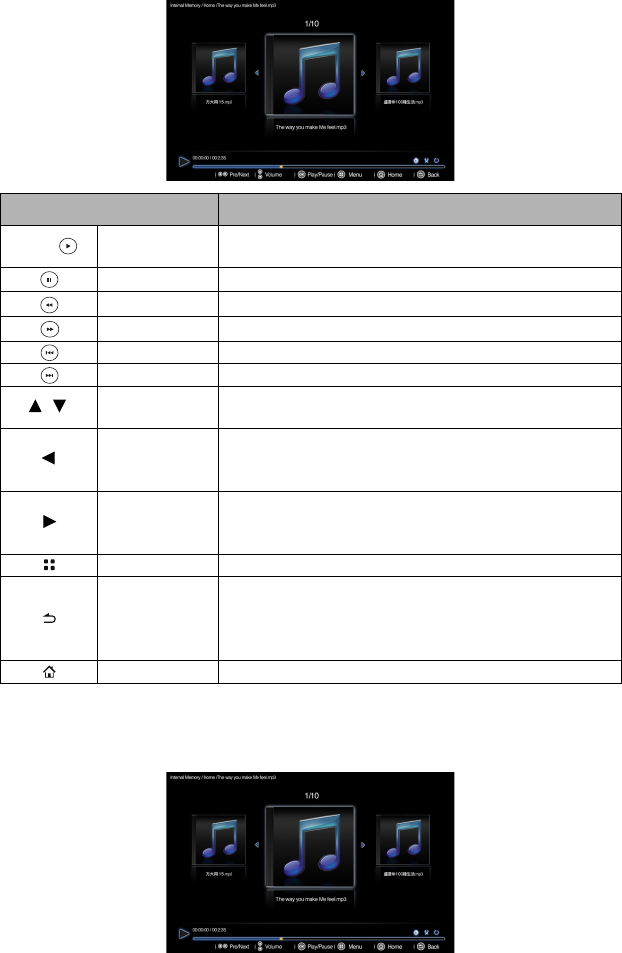 Das Musik Player Popup-Menü bietet ein OSD-Menü für Einstellungen bei der Wiedergabe