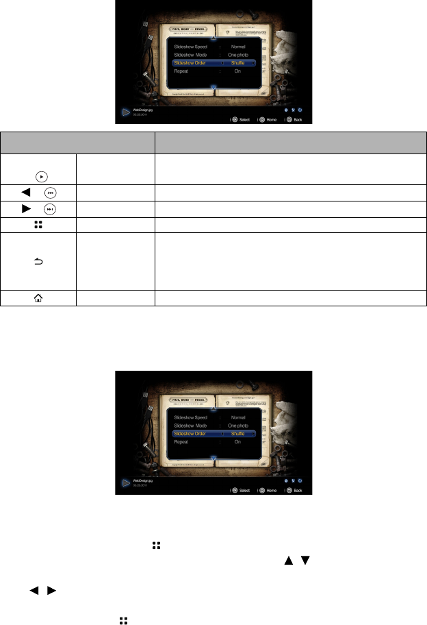 Das Foto Viewer Popup-Menü bietet ein OSD-Menü für Einstellungen bei der Anzeige von