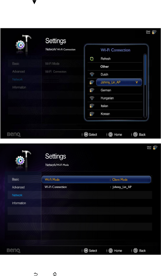 5. Drücken Sie auf oder , um Netzwerk zu verlassen und zurück zur Startseite