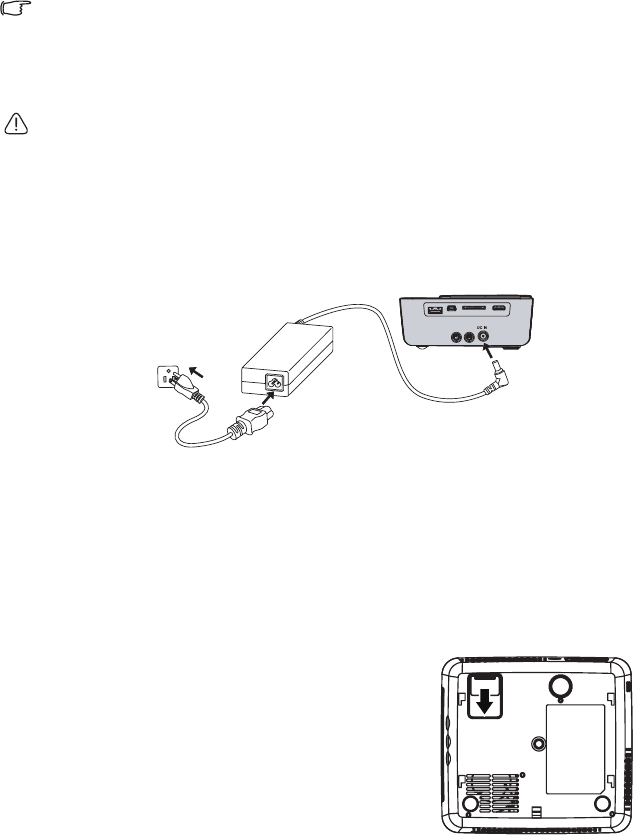 The projector must be used with specified Lithium-ion rechargeable battery. Charge the
