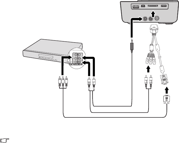 To connect the projector to a Component Video source device: