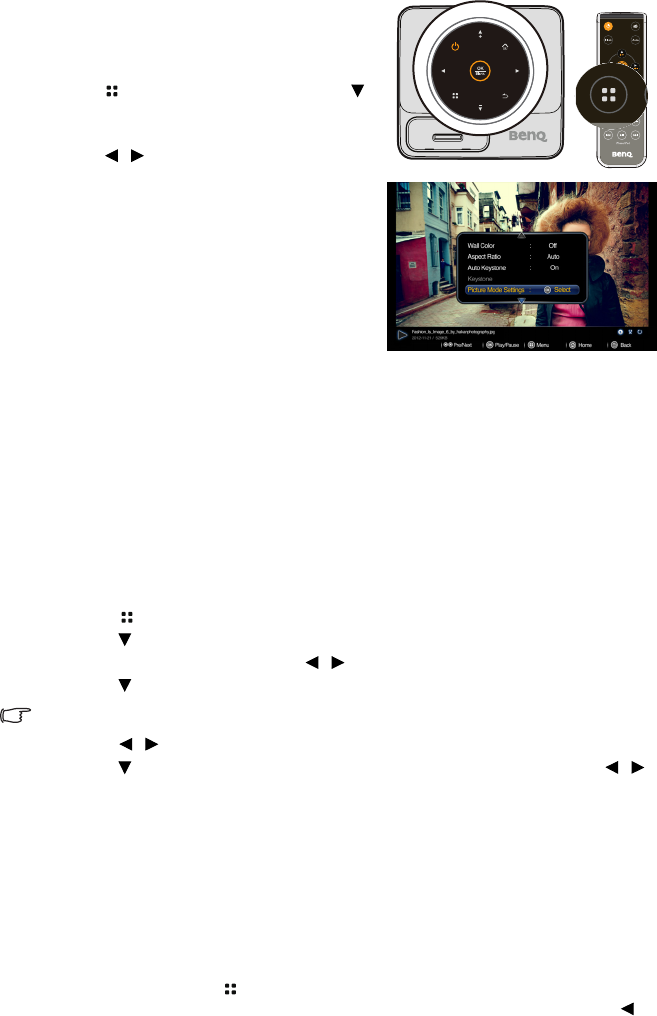 iPod, composite video, component and HDMI modes. Select Wall Color and press /