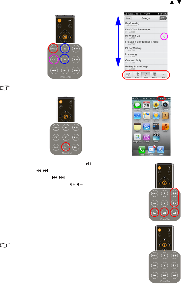 For more instructions on iPhone/iPod keys, see "iPhone/