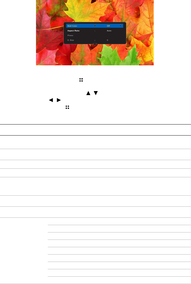 2. When the OSD is displayed, press / to select the desired item and adjust the