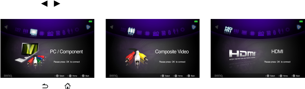 3. Press / on the projector or remote control to select the input signal and then
