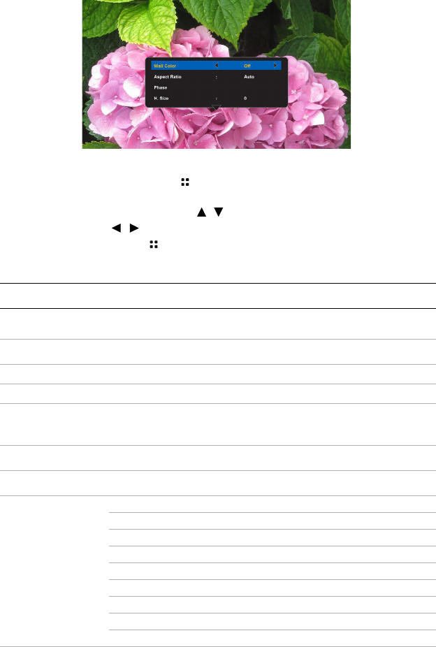 2. When the OSD is displayed, press / to select the desired item and adjust the