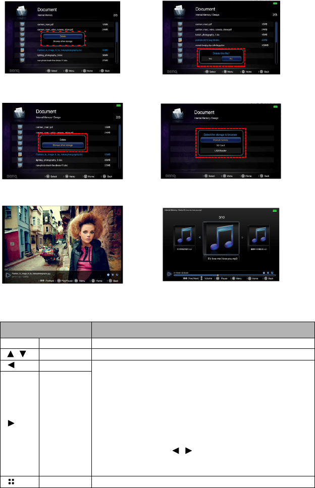 OK Play/Pause Plays or pauses a video or music.