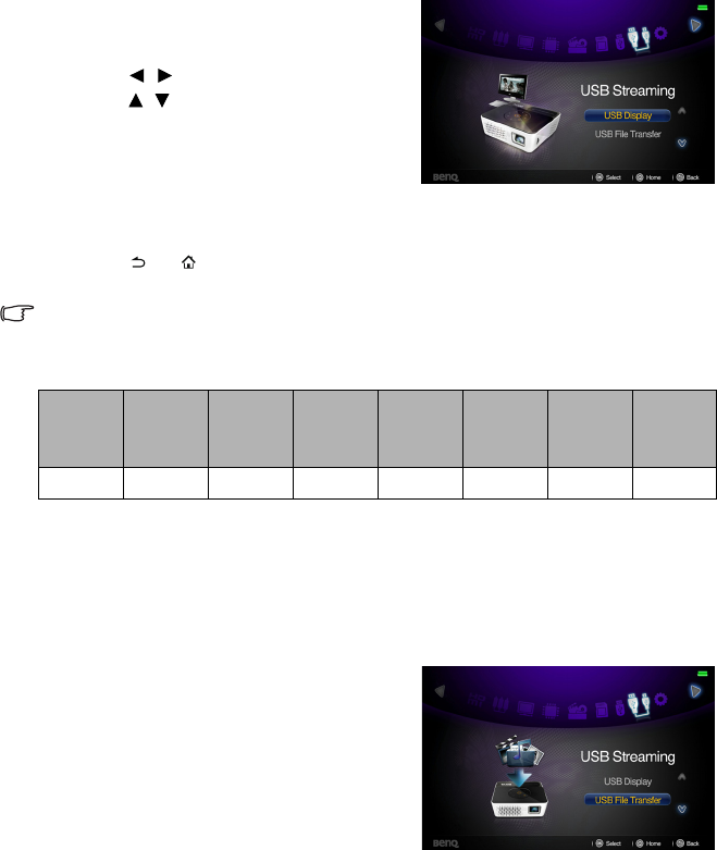 The projector supports USB streaming for USB Display and USB File Transfer.