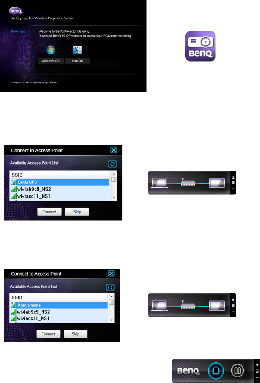 that, execute BenQ GP3 EZ QPresenter and a AP list will pop up. Choose the