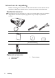 Veiligheidsinstructies (vervolg) Montage van de projector op het plafond Voor een probleemloze werking van de projector is ook veiligheid van groot belang. Neem de volgende veiligheidsvoorschriften in acht om schade en lichamelijk letsel te voorkomen. Als u de projector tegen het plafond wilt bevestigen, is het raadzaam de plafondmontageset voor BenQ-projectoren te gebruiken voor een veilige en stevige montage.