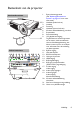 Buitenkant van de projector 1. Voorkant/bovenkant 1 4 2 5 6 3 7 Achter/onderkant 9 10 11 8 12 13 14 15 16 17 18 19 10. 11. 12. 13. 14. 15. 16. 20 21 22 2. 3. 4. 5. 6. 7. 8. 9. 17. 18. 19. 20. 21. 22. Extern besturingspaneel (Zie "Bedieningselementen en functies" op pagina 10 voor meer informatie.