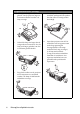 8. 9. Net als in de afbeelding, houdt u eerst de lamp boven de opening en richt deze op de nis in de projector. Plaats vervolgens de lamp helemaal in de projector. Draai de schroeven van de lamp weer vast. • Een losse schroef kan tot een slechte verbinding leiden, met storingen tot gevolg. • Draai de schroef niet te vast. 10. 11. Sluit de lampconnector aan op de projector. Steek de lampsnoeren terug in de sleuven. 12. Plaats het lampdeksel terug. 13.
