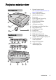 Projector exterior view 1. Front/upper side 5 1 2 6 7 3 8 4 Rear/lower side (MP515) 2. 3. 4. 5. 6. 7. 8. 9. 10. 11. 12. 13. 14. 15. 16. 17. 14 15 16 17 18. 19. 19 (MP525/MP525P/MP575) 14 15 16 17 16 17 External control panel (See "Controls and functions" on page 10 for details.