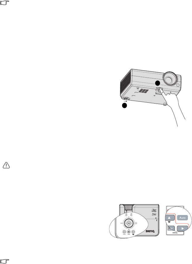 deze verstelvoetjes kunt u de hoogte van het beeld en de projectiehoek wijzigen. De