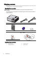 Table of contents Important safety instructions .........................3 Introduction........................7 Adjusting the sound.............................41 Adjusting the sound level ....................41 Personalizing the projector menu display ........................................42 Shutting down the projector ...............42 Menu operation ...................................43 Projector features .................................. 7 Shipping contents..................................